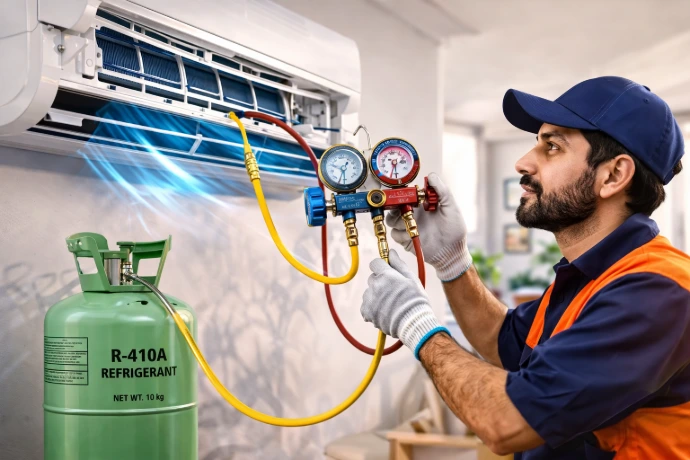 Our expert technicians first check for gas leaks, fix any issues, and then refill the correct type of refrigerant using advanced tools. We ensure proper pressure levels for optimal cooling and long-lasting performance. Whether it’s split AC or window AC, we deliver fast, reliable, and affordable gas charging services in Indore, Madhya Pradesh.